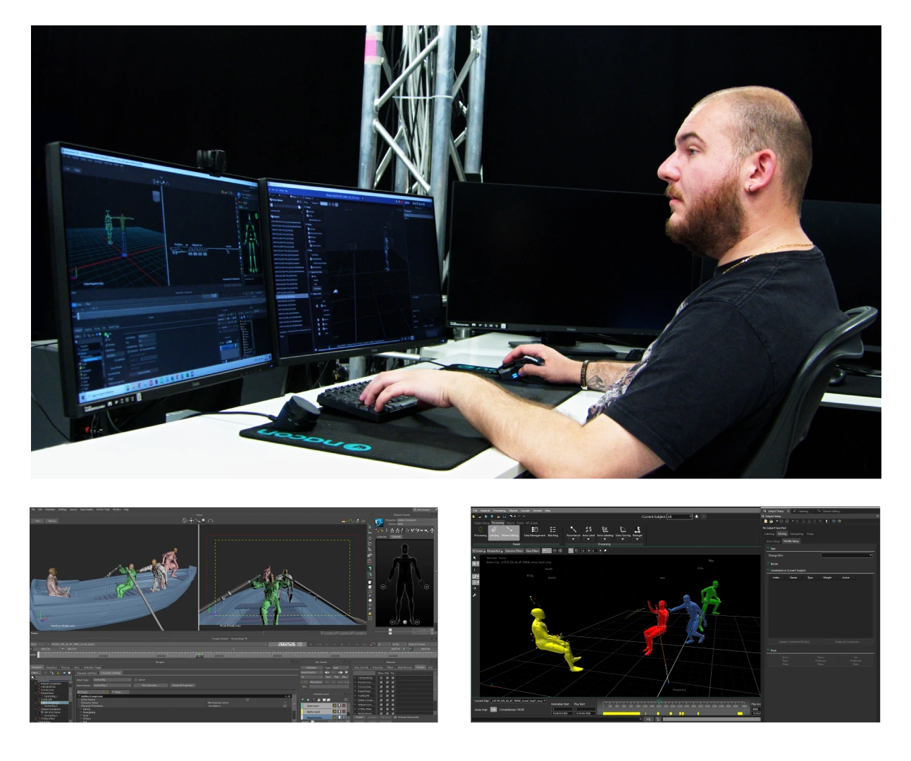 Nous traitons les données de captures et enregistrons les mouvements sur les squelettes 3D des performers, des props et de la Camera 3D.